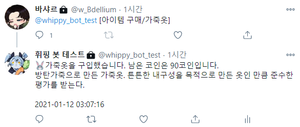 진행중인 트위터 자동봇 커미션v2에서 서비스중인 공용 상점 시스템입니다.